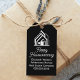 This professional realtor gift tag is custom made with your real estate company name under the modern cursive script and house image. These chic black realty business housewarming tags feature a house logo image for home builder or realty agent company marketing.