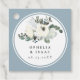 Design features delicate watercolor ivory flowers with green leaves and with a chic dusty blue border.