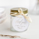 Cette élégante étiquette de faveur de mariage comporte un faux Merci métallique chatoyant sur un arrière - plan blanc immaculé, ajoutant une touche élégante et personnelle à vos faveurs de mariage. Customisez avec vos noms et votre date de mariage pour créer un souvenir unique pour vos invités. Le design simple et sophistiqué s'inscrit parfaitement dans un thème mariage, ce qui en fait une belle touche de finition à votre journée spéciale.