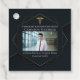 Cette étiquette de faveur chic noire de l'école de médecine dispose d'un design hexagone géométrique or avec un élégant caducée médical au-dessus d'une photo du diplômé. Photographie moderne attrayante étiquettes cadeaux de célébration pour un nouveau médecin ou une infirmière en 2025.