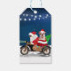 Un Père Noël à vélo livrant un arbre de Noël et un chien anglais Bulldog en cadeau est une idée cadeau de Noël parfaite pour quelqu'un qui aime cette race de chien.