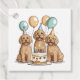 Belle illustration de chiens Goldendoodle portant un casquette d'anniversaire autour d'un gâteau d'anniversaire et de ballons. Parfait pour les amateurs de chiens ou de chiens de famille.