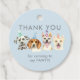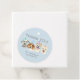 Balise de faveur mignonne pour la fête d'anniversaire du chiot de votre enfant. Illustration de 4 chiens (dalmate, beagle, pit bull terrier) avec casquettes de fête. Le texte dit "merci d'être venu à ma paille." Customisez ce produit en ajoutant le nom de votre enfant au dos.