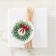 This gift tag is shown with a festive holiday mistletoe wreath print.