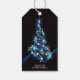 Étiquettes-cadeau Christmas Party Blue Tree Shiny Black Elegant