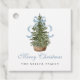 Add a charming touch to your holiday gifts with these personalized gift tags featuring a delightful watercolor festive green Christmas tree, adorned with a beautiful blue bow.