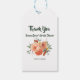 Jolie douche nuptiale merci étiquette cadeau avec un motif fleur saumon/orange. Vos propres informations personnelles sur la douche peuvent être facilement insérées en suivant l'étiquetage modèle. Si vous avez besoin d'aide en matière de placement, de rédaction ou de personnalisation, utilisez le lien "Contacter ce concepteur" à droite de cette page.
