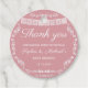 This round Cielito Lindo baby shower thank you tag features delicate white papel picado bunting and ornate floral borders on a Blush Pink background. The elegant script “Thank You” paired with personalized names and event date makes it a beautiful finishing touch for your baby shower favors.