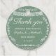 This round Cielito Lindo baby shower thank you tag features delicate white papel picado bunting and ornate floral borders on a Sage Green background. The elegant script “Thank You” paired with personalized names and event date makes it a beautiful finishing touch for your baby shower favors.
