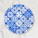 Étiquette de remerciement pour un mariage avec des citrons aquarelle et des carreaux bleus italiens.
