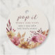 Tombez amoureux de cette belle marque de faveur rustique design pour les baby showers d'automne. Design chaleureux et élégant pour mini bouteilles de champagne, fleur sauvage, feuillage et citrouille aux couleurs chatoyantes. "Pop it when she pops" apparaît ci-dessus, ainsi que votre texte personnalisé — "profitez d'un toast lorsque le bébé [Nom] arrive."