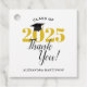 Ajoutez cette simple étiquette personnalisée de faveur de graduation à vos cadeaux de remerciement. Le design élégant est composé de texte noir et or sur un arrière - plan blanc. Texte : Classe du Merci 2023. Un casquette noir est assis au-dessus du zéro de l'année.