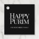 Personalized family name purim sticker, classic black & white tag.