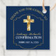 Merci à vos proches d'avoir assisté à la Confirmation de votre fils en leur offrant une faveur ou un petit cadeau avec cette élégante étiquette de remerciement de la marine. Ce design présente une belle croix d'or avec un cadre doré contre un riche arrière - plan bleu marine. Autres styles, couleurs et polices disponibles. Veuillez nous contacter si vous avez une demande spéciale et nous serons heureux de vous aider.