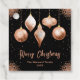 Add a touch of festive sophistication to your holiday party favors with this elegant Christmas tag featuring five rose gold ornaments against a sparkling black background. Perfect for tying onto treat bags, gift boxes, or table settings, this customizable tag includes space for your family name and year. A stylish way to personalize your celebration and impress your guests.