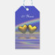 Balise cadeau avec mon oeuvre numérique de deux coeurs dorés flottant sur l'eau sous un arc-en-ciel. Le texte personnalisable dit "50 ans" sur le devant et "À, De" sur le dos.