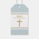 Étiquettes-cadeau Communion bleu avec Pois d'or