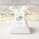 Parfaits pour les fêtes de fiançailles, les dîners de répétition ou les wedding showers, ces étiquettes festives sont ornées d'une tranche de gâteau à l'aquarelle dans les tons arc-en-ciel, surmontée de mousseux et de confettis d'aqua. Personnalisez avec vos noms et la date mariage ou la date de l'événement en dessous.
