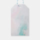 Une étiquette cadeau de remerciement avec un arrière - plan d'aquarelle turquoise et pastel. Un crâne animal chic boho avec un bouquet floral sur la tête et des petits papillons qui fleurissent. Une jolie bordure décorative aux petites teardrop en bleu clair.