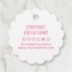Crochet Crocheting Website Custom Business Name Stickers Étiquette dispose d'un crochet crochet et fil rose avec votre texte personnalisé tel qu'un message de remerciement dans script de typographie moderne sur un arrière - plan blanc avec votre nom d'entreprise et les détails des médias sociaux et le site d'affaires au verso. Personnalisé en modifiant le texte dans les zones de texte fournies. Supprimez les icônes de médias sociaux indésirables en cliquant sur l'icône et en appuyant sur supprimer. Parfait pour les petites entreprises, les produits de crochet, les cadeaux et les faveurs. Conçu par ©2024 Evco Studio www.zazzle.com/store/evcostudio
