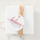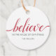 Saluer "Croyez en la magie de la saison" comprend le mot croire en une police manuscrite moderne. Une étiquette de faveur parfaite pour la saison des fêtes.