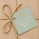 Étiquettes de faveur de baptême personnalisées croix verte sauge religieuse.