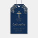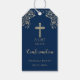 Étiquettes-cadeau Croix d'or personnalisée bleu de confirmation