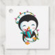 Tags de fête avec un mignon manchot de noël avec lumières de noël et un cadeau.