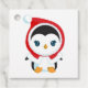 Pingouin de Noël mignon dans une tenue de père Noël étiquettes en faveur de la fête des caricatures.