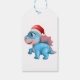 Étiquettes-cadeau Cute Dinosaur Santa Hat Enfants Noël Bleu
