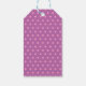Des étiquettes-cadeaux décoratives illustrées d'une mignonne fille avec une petite queue de poney habillée en haut et tablier rose et portant un casquette chef. Elle mélange le mélange dans un bol avec une cuillère en bois. Au contraire, un pois violet et rose. Personnalisez avec un message de fête.