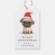 Étiquettes-cadeau Cute pug in Santa hat illustration Merry Christmas