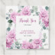 Une élégante étiquette de remerciement moderne pour baby shower de mariage en plein été avec un bouquet de dahlia aquarelle dans des nuances de pourpre et de rose, avec des feuilles botaniques vertes luxuriantes et de l'eucalyptus. Veuillez trouver d'autres modèles et variations correspondants dans ma boutique "celebrationmoment".