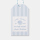Étiquettes de Cadeau de Fête de Bachelorette Dernier Toast Sur La Côte. Ajoutez une touche personnelle à votre fête de bach côtière avec ces étiquettes de cadeau personnalisées. Avec un fond rayé bleu clair chic et un coquillage, ces serviettes apportent une ambiance fraîche de plage à votre fête.