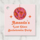Ceci est une étiquette de faveur personnalisée pour la fête de weekend d'enterrement de vie de jeune fille avec une belle boule disco ombrée rétro groovy rose, orange, violet et marron. vous pouvez modifier les détails en utilisant le bouton personnaliser