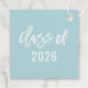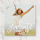 Annoncez leur graduation en style en présentant une photo senior préférée avec ce script brossé blanc "Graduate" superposition design de balise de faveur. Parfait pour les annonces de remise de diplômes et les fêtes ! Personnalisez le libellé blanc avec le nom de la diplômée et l'année de classe (au verso). La couleur bleu clair aqua / bleu turquoise arrière - plan sur le dos peut être customisé pour coordonner avec la photo ou les couleurs de la fête.