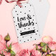 Élégant Mariage moderne Favor Tag avec les mots "Amour et Merci" contre un motif point. Personnalisez-le en remplaçant le texte de l'espace réservé par vos propres informations. Pour plus d'options comme changer la police et sa taille/couleur ou l'espacement entre les lettres cliquez sur le bouton "Personnaliser". *Veuillez noter que le filigrane Zazzle qui apparaît dans l'aperçu du zoom n'apparaîtra PAS sur le produit imprimé final. © Bois de rose et agrumes