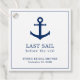 Étiquettes de cadeaux de fête de mariage nautiques avec une ancre bleue marine et le message "Dernière Voile Avant le Voile", ainsi que votre nom, le titre de l'événement et la date, à l'intérieur d'une bordure, sur fond blanc. Le dos est d'un bleu marine assorti et peut être changé à la couleur de votre choix. Ces étiquettes simples sont parfaites pour une célébration côtière en été et ajoutent une touche personnelle à vos cadeaux.