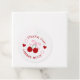 L'amour est doux comme la cerise ! Cérémonie de mariage avec des cerises nouées dans un ruban rose sur fond rose pâle et gris