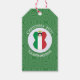 Un ange portant le drapeau de l'Italie sur cette étiquette-cadeau personnalisée pour la décoration de vacances ou l'ajout de décoration de Noël à vos cadeaux. L'ange de Noël du Drapeau Italien se trouve à l'intérieur d'un cercle fractal blanc de carrés grossiers. L'arrière - plan est une fractale verte de carrés grossiers. Ajoutez votre propre texte ou personnalisez avec un nom et l'année. Le dos est vide pour votre message personnel.