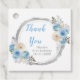 Beautiful birthday party favor tag with a dusty blue and silver faux glitter frame with floral flower arrangements. Perfect for a birthday party. The words can be changed to suit your own details or requirements