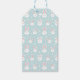 These adorable illustrated gift tags feature a pastel blue Easter bunny pattern with scattered doodle flowers. Perfect for cheerful spring gifting.