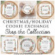 Ces étiquettes Christmas Cookie Exchange Favor sont décorées avec des biscuits aquarelles, du feuillage et des baies. Facile à personnaliser. Aquarelle originale © Michele Davies.