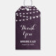 Chic mariage moderne d'été merci vous préférez des étiquettes cadeaux avec des lampes à cordes élégantes simples accrochées au sommet et un mélange classe de polices de script modernes et de calligraphie sur un arrière - plan imprimé de la texture fausse aquarelle. Un design simple et élégant, parfait pour l'été ! Cliquez sur le bouton CUSTOMISER IT pour customiser les polices, déplacer du texte et créer votre propre conception unique d'invitation unique.