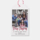 Ajoutez une touche finale élégante aux cadeaux de Noël et aux faveurs de fête avec des étiquettes de cadeaux personnalisées Merry Christmas avec photo de style moderne chic. L'image et tout le texte de ce modèle sont faciles à personnaliser. Le texte en écriture rouge peut être changé en Happy Holidays, Seasons Greetings, Happy New Year ou tout autre texte de votre choix. Il y a également un espace prévu au dos pour un message personnalisé facultatif. Le design festif rouge, blanc et noir présente une calligraphie en écriture cursive audacieuse, une typographie minimaliste classique et une photo. Joyeux Noël et Bonne Année !
