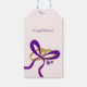 Les étiquettes cadeau de mariage "The Elegant Script - Congratulations" font partie de la collection "Stripes and Flowers : Salle de bain, Plage, Yoga, Voyage". L'étiquette représente une paire d'anneaux de mariage tenus ensemble par un ruban indigo avec deux boutons de fleurs en dessous. Ajoutez votre message personnel au recto et au verso. Tout espace que vous laisserez vide pourra être utilisé pour une note manuscrite.