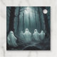 Une scène effrayante de fantômes mystérieux flottant dans une forêt brumeuse et hantée. Idéal pour les amateurs d'atmosphères éffrayantes et d'images fantomatiques.