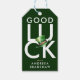 Cette étiquette moderne et élégante vert foncé et blanc pour une Saint Patrick's Day convient à la fois aux amis et aux cadeaux de famille ou d'entreprise. Il a un grand script noir gras disant Good Luck, une aquarelle élégante casquette irlandaise verte et un texte personnalisable, le tout sur un arrière - plan blanc. Le dos est avec un vert clair simple.