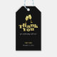 Le tag cadeau d'anniversaire moderne merci contient du champagne d'or avec un texte de typographie audacieux "merci" sur l'arrière - plan noir.