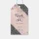 Étiquettes-cadeau Élégant Chic Fleurs Argent Merci rose